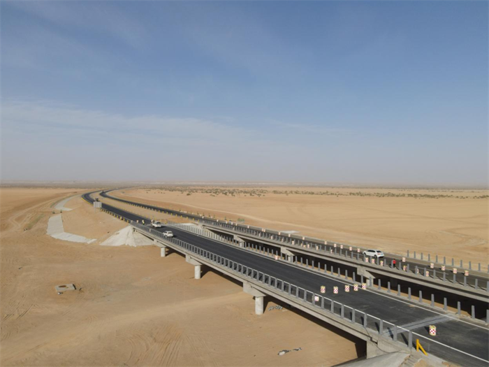 S21阿勒泰至乌鲁木齐高速公路(以下简称“阿乌高速”)向北穿越古尔班通古特沙漠、准噶尔盆地,打通乌鲁木齐市至阿勒泰地区的高速“直达”公路大通道,是新疆第一条沙漠高速公路。项目全长342.538公里,其中,阿乌高速2标由贵州公路集团第三工程有限公司承建,全长34公里。