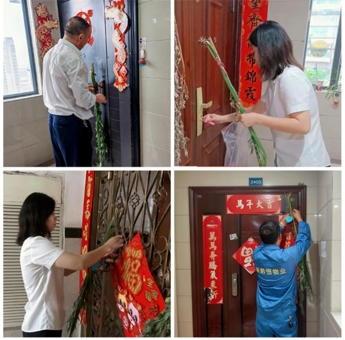 曦城上品小区管理处为业主挂上艾草、菖蒲