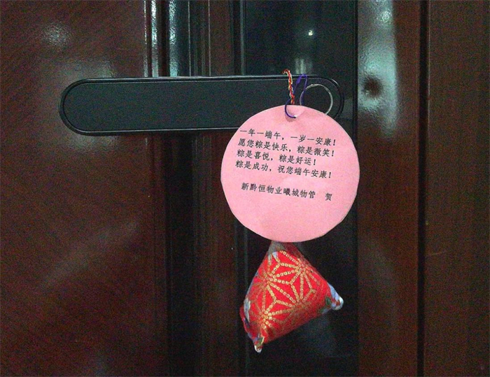 曦城上品小区管理处为业主挂上精心准备的香囊