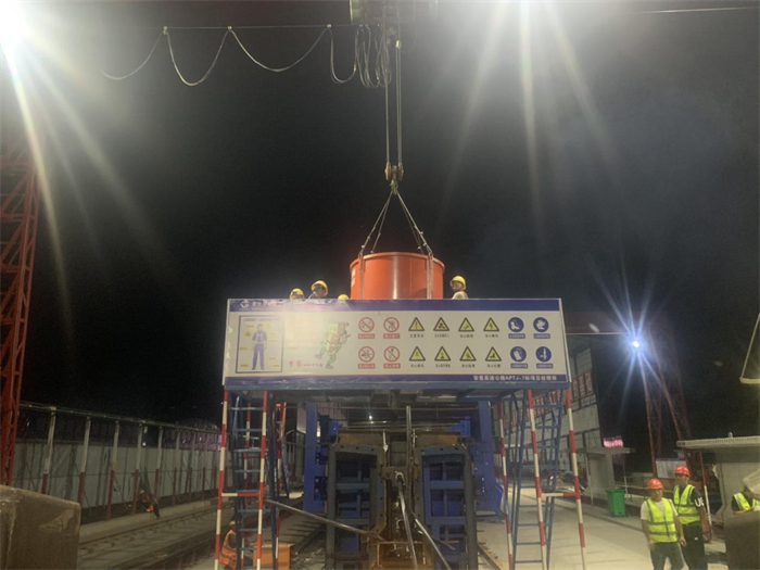 为确保首片预制T梁顺利浇筑,项目部强化过程管控,从技术方案、安全质量、材料进场等多方面进行严格把关,对钢筋制作安装、模板加固、波纹管定位、混凝土拌合、浇筑、振捣关键工序全程盯控,确保每道工序科学规范、衔接有序。