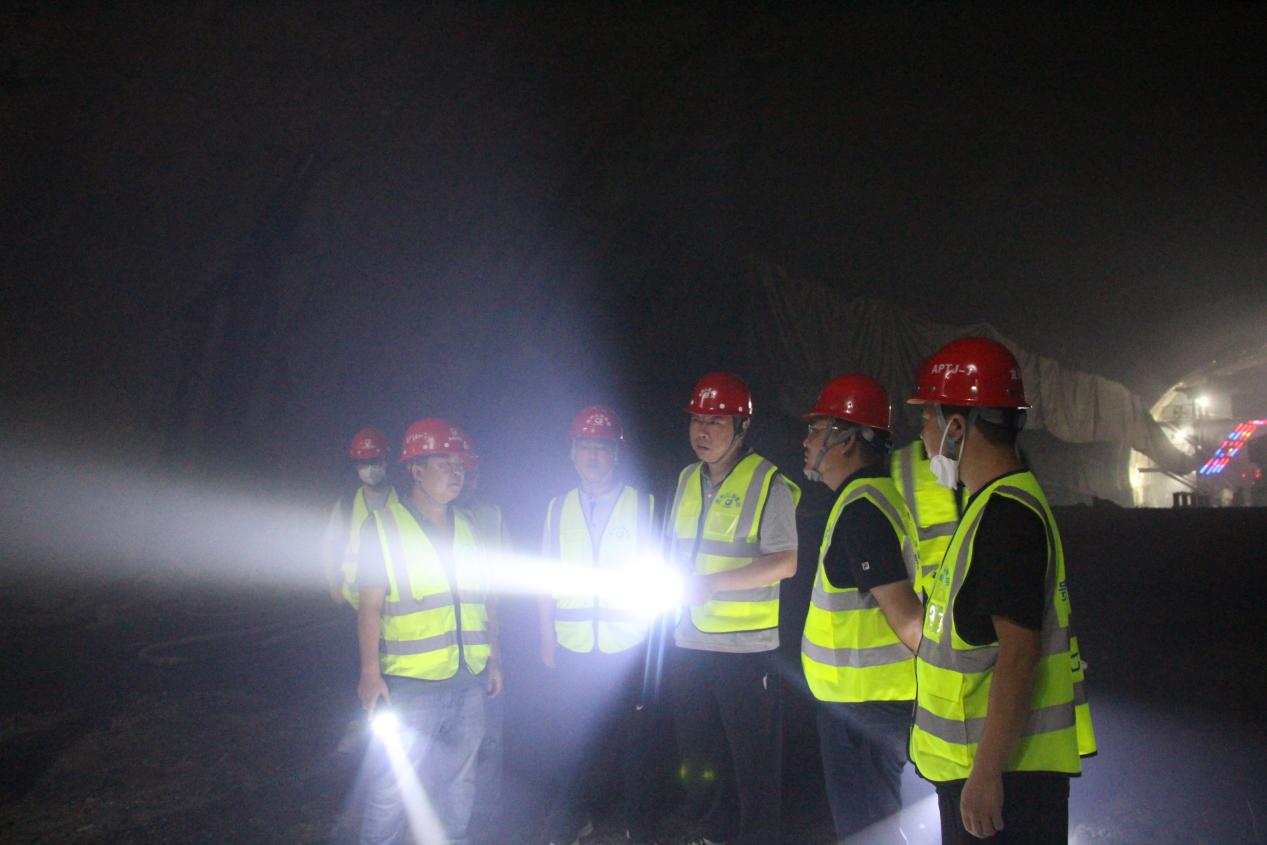崔文武(右三)在安盘七标大坪子隧道检查指导工作