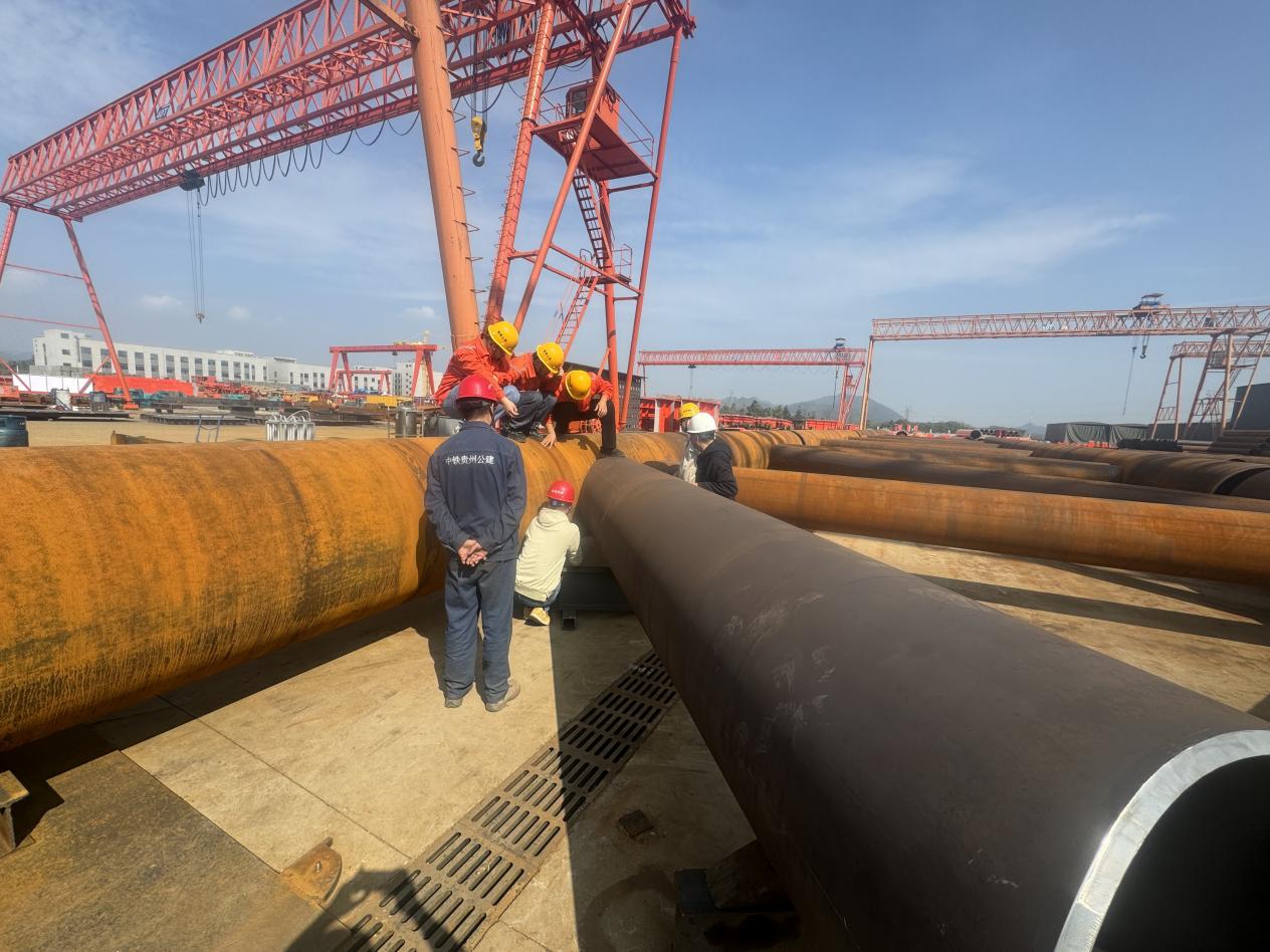 日前,贵州公路集团交通产业园顺利完成六车河大桥钢管拱首件拼装工程,并通过项目业主单位和监理单位的联合验收。此次钢管拱首件拼装及验收的通过,是交通产业园钢结构生产制造上取得的又一阶段性成果,标志着钢管拱从加工、吊装到拼装、焊接全过程工序完成样本工程并初步达到移交状态,并为后续钢梁加工制造提供了宝贵的经验借鉴。