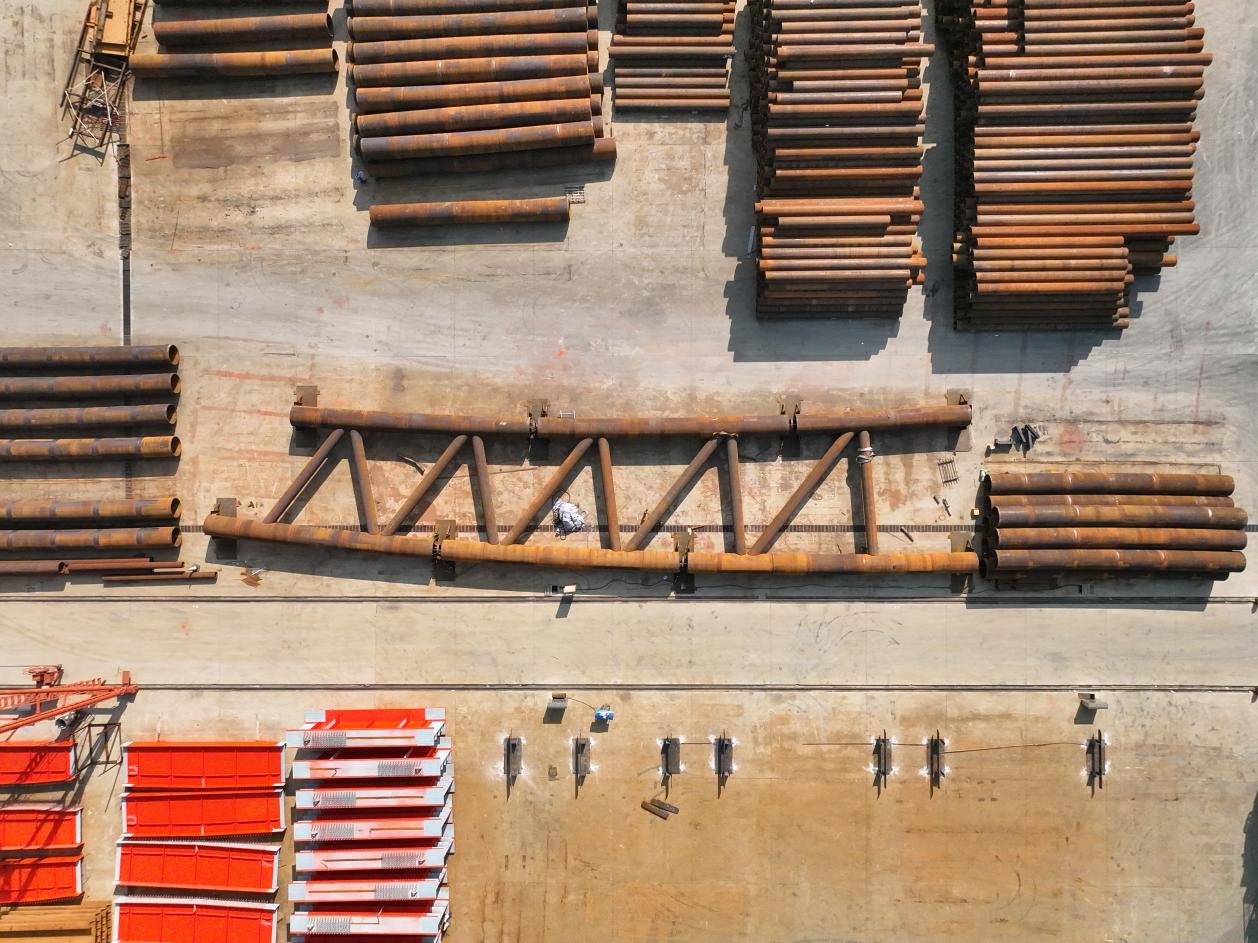 钢管拱的拼装要求每个环节达到毫米级的精确度,稍有偏差就可能影响整个结构的稳定性和安全性。因此,技术人员时刻关注每一个细节,借助先进的测量设备,严格监控钢管的弯曲程度、焊接质量等关键环节,不断总结经验,优化拼装流程,以确保每一步都符合设计要求。经过10多天的努力,一个巨大的拱形结构慢慢形成,首件2+1拼装任务也随之顺利完成。
