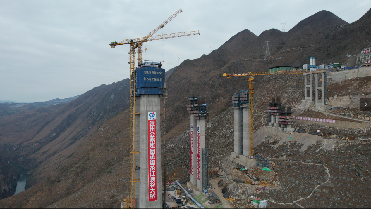 花江峡谷大桥六枝岸(六安7标)由贵州公路集团第三工程有限公司承建,主塔高262米,大桥主缆六枝岸边跨为245米;主缆中跨1420,垂跨比1/10;主梁采用钢桁加劲梁(板桁组合结构),六枝岸采用隧道锚。六枝岸桥址位于花江大峡谷风景名胜区二级核心内,建设面临着环境保护、超高大跨度、大方量横梁施工等难题。贵州公路集团的建设者们历经674天的艰苦奋战,最终顺利完成花江峡谷大桥六枝岸施工任务。