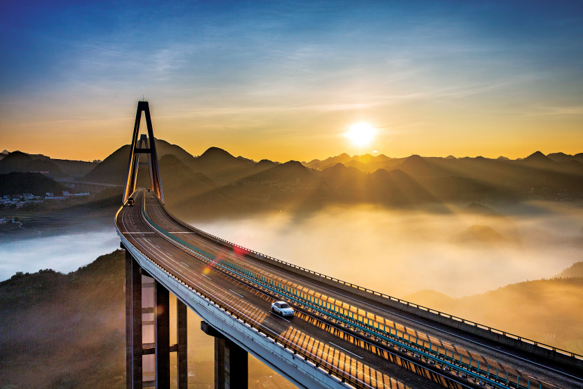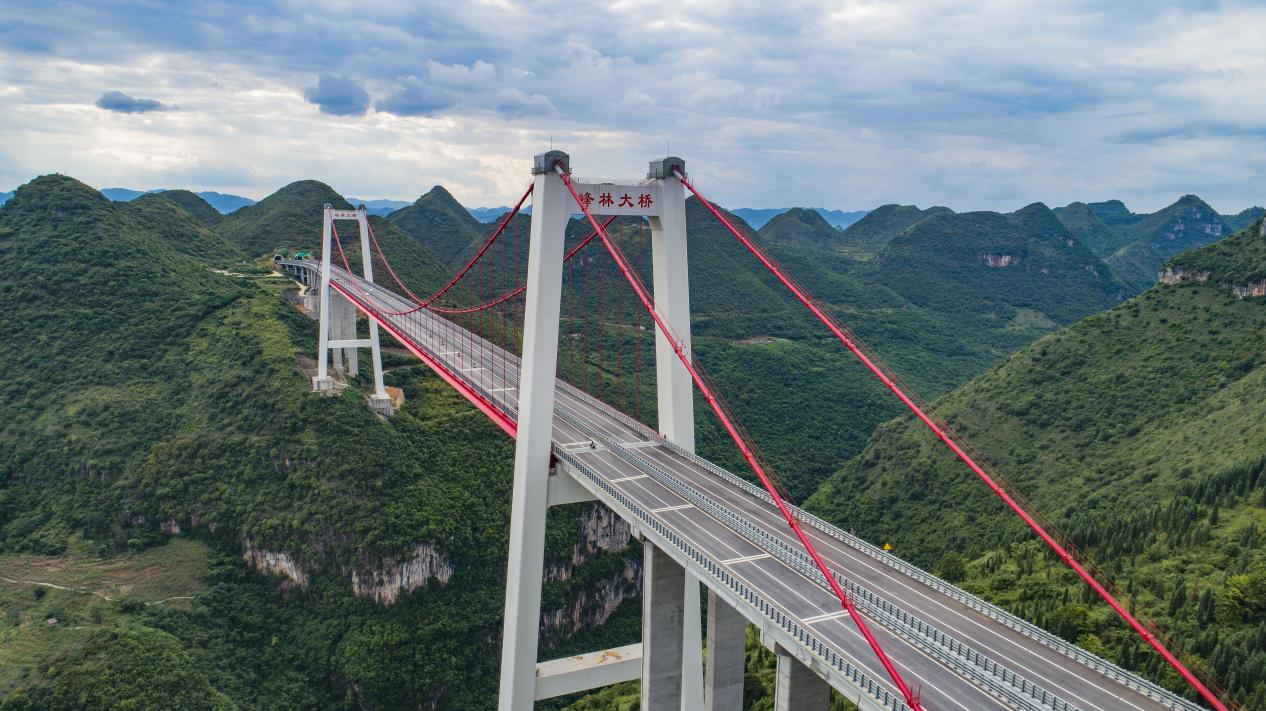 大桥建设之初,全体参建人员就将“绿美建造、科技兴环”的设计理念作为峰林大桥一以贯之的建设追求,致力于将峰林大桥建设为一座功能性、艺术性、观赏性俱全的景观桥梁,让过往司乘人员充分体验“车在景中走、人在画中游”的美好享受,推动地方交通旅游融合发展。