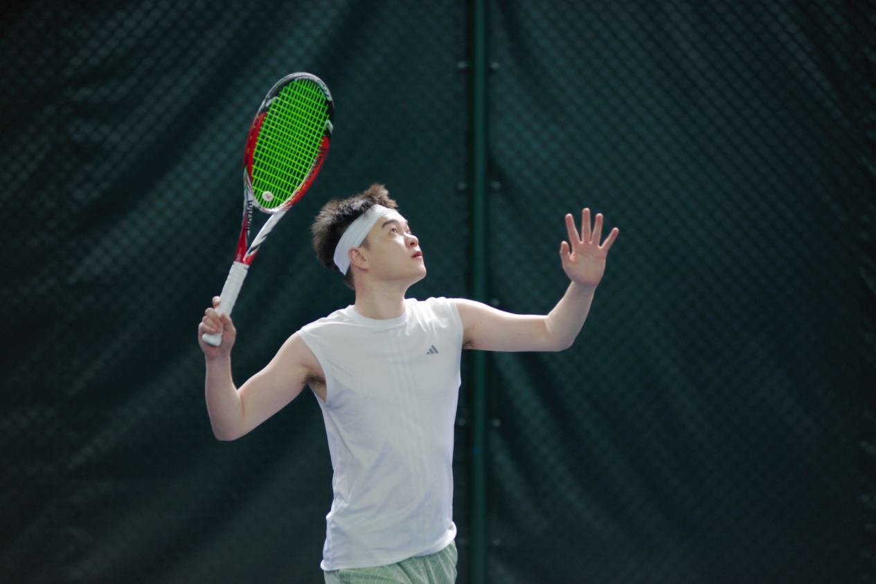 6月15日,来自贵州交投集团二队(贵州公路集团)的王荣有获网球比赛男子组第一名。