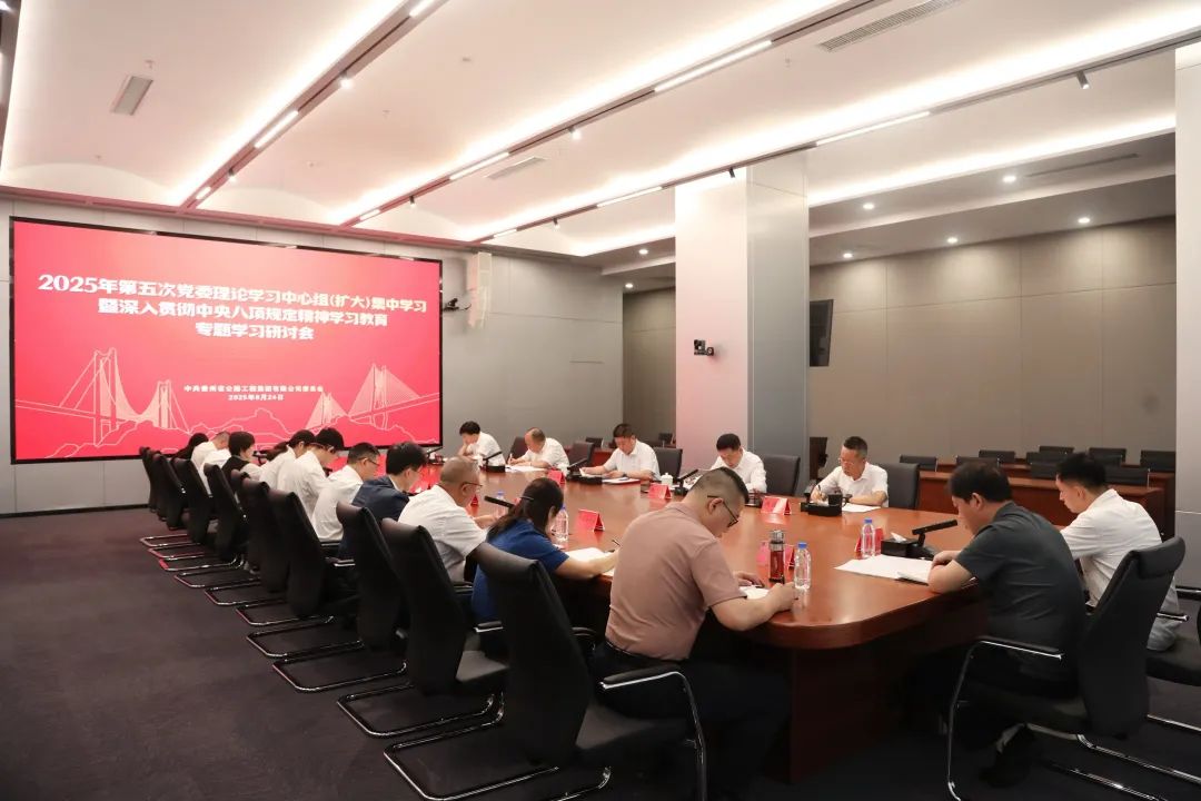 6月24日,贵州公路集团召开2025年第五次党委理论学习中心组(扩大)集中学习暨深入贯彻中央八项规定精神学习教育专题学习研讨会。集团党委书记、董事长马白虎主持会议并讲话,集团在家领导班子成员朱明聪、张德顺、黄任远、冉茂学围绕主题作现场研讨发言。