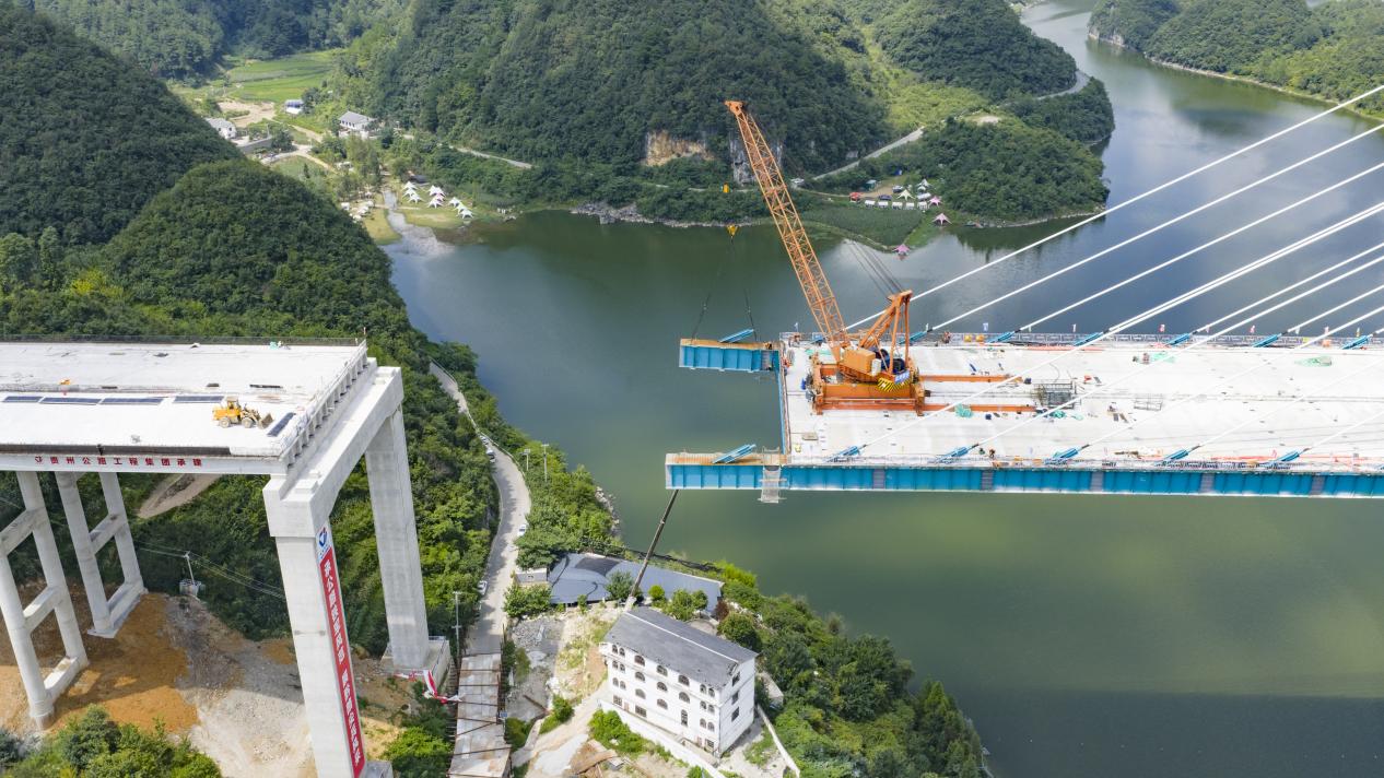 2025年5月31日,百花湖大桥主跨钢梁吊装过半。