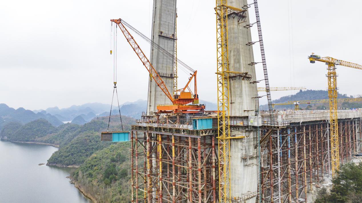 2025年5月23日,百花湖大桥11号主塔封顶。