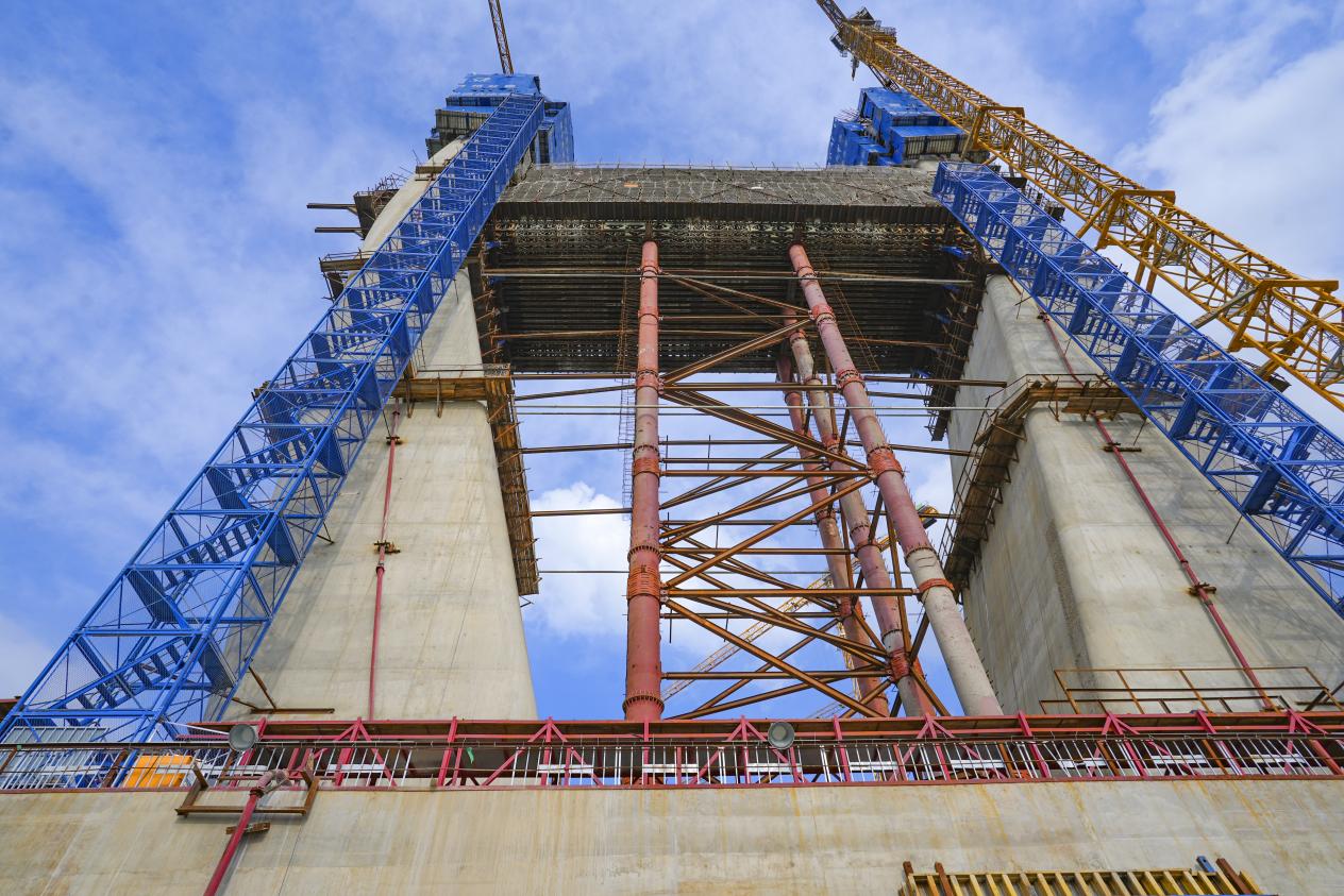 2024年6月18日,百花湖大桥11号主塔下横梁浇筑完成。