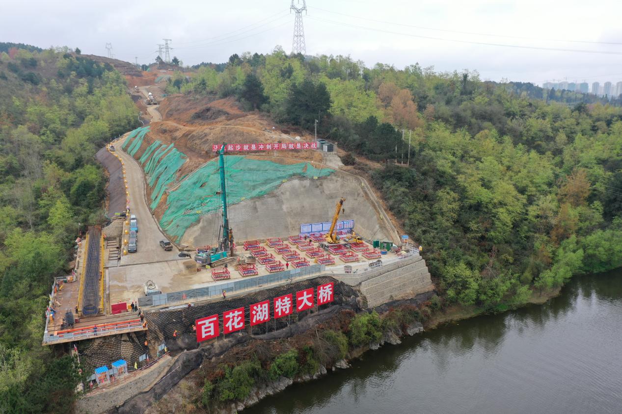 2023年4月7日,百花湖大桥11号主塔完成首根桩基浇筑。