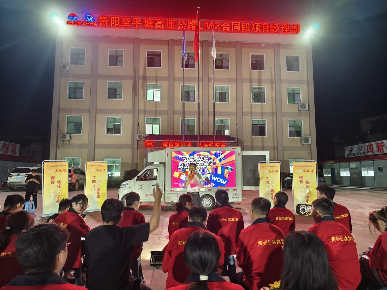 秋意渐浓,青春正好。近日,贵州公路集团团委、青工委与工会联合举办的“工地青年说·欢乐嘉年华”第四、第五、第六站活动,先后走进第七工程公司承建的贵阳市三桥小学二期工程项目、新黔恒物业公司世贸广场管理处与第八工程公司承建的贵平高速路面2标,以脱口秀、文艺表演、知识问答等轻松形式,为奋战在岗位上的青年职工打造了一场“解压”与“充电”并举的青春文化盛宴。