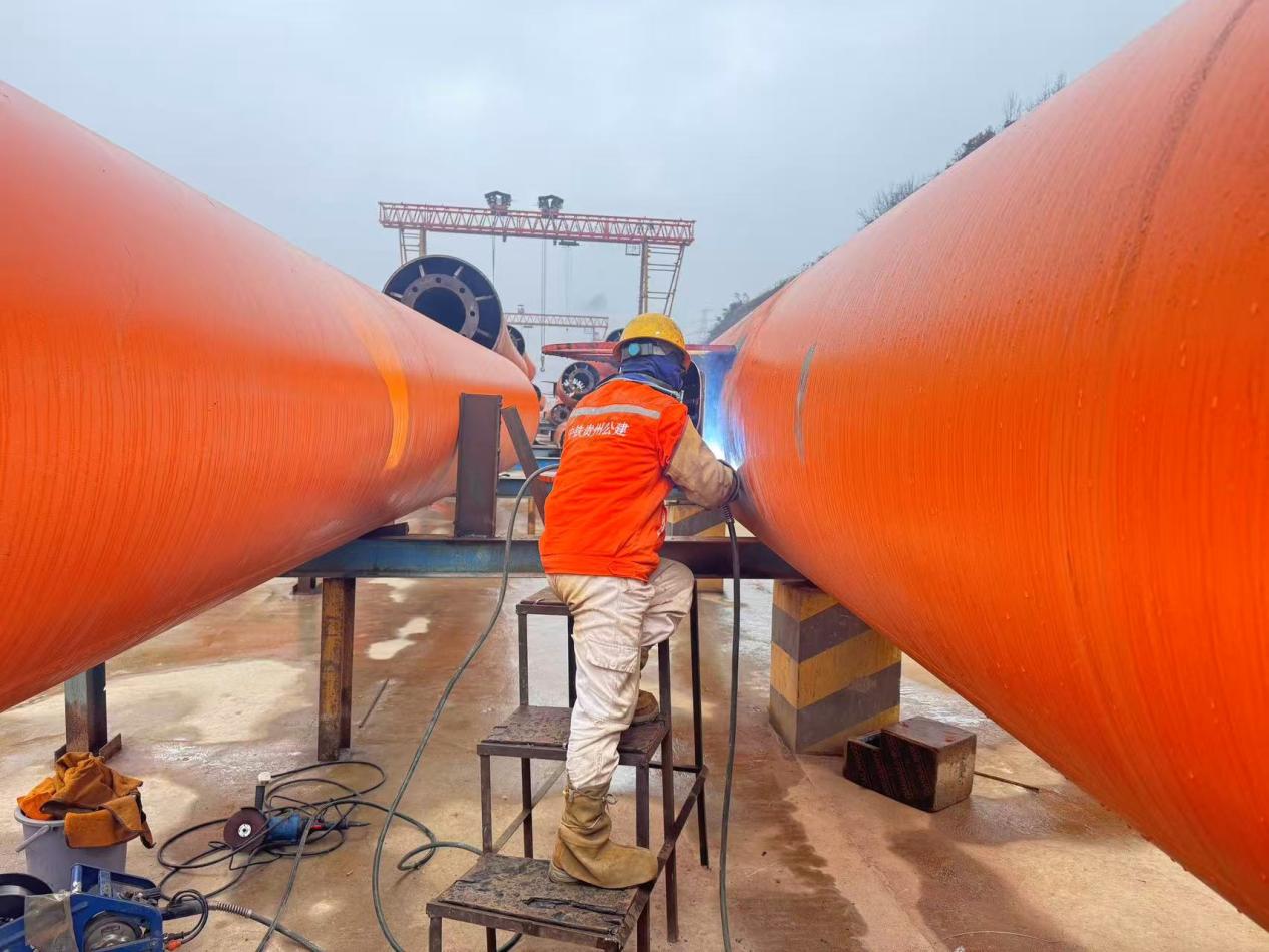 第三分公司安盘7标春节期间持续作业,5名建设者留守一线,顺利完成卧拼桁片焊接4片。
