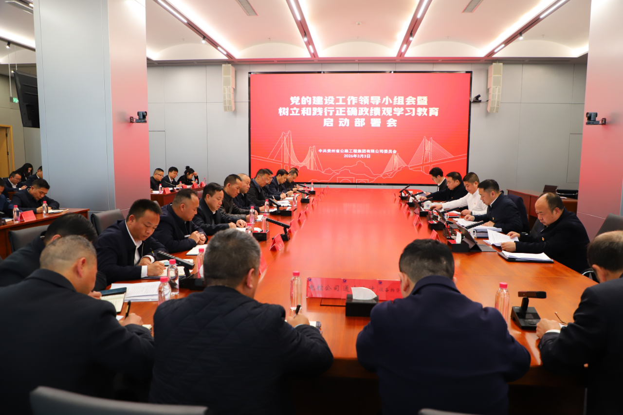 3月3日,贵州公路集团召开党的建设工作领导小组会议,学习贯彻习近平总书记关于树立和践行正确政绩观的重要论述和文章,认真落实中央、省委、贵州交投集团党委党的建设工作领导小组会议精神,部署启动树立和践行正确政绩观学习教育工作。集团党委书记、董事长、党的建设工作领导小组组长马白虎出席会议并讲话,在家领导班子成员朱明聪、崔文武、张德顺、曾智鸿出席会议。