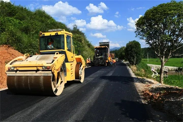 黔东南州锦屏县农村公路建设摊铺沥青。冯四方 摄