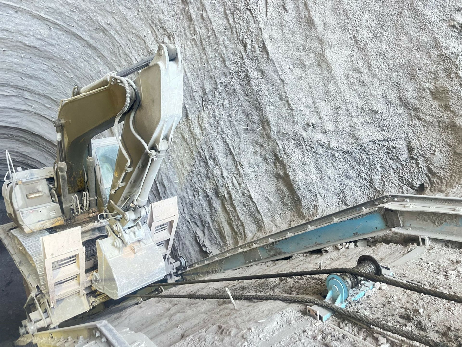 而我们的花江峡谷隧道锚在施工中克服种种困难,探索研发出了隧道多功能出渣系统,创新设计仅用一条轨道便同时满足出渣、挖机及型钢材料的进出,实现了安全、效率、成本的兼顾。