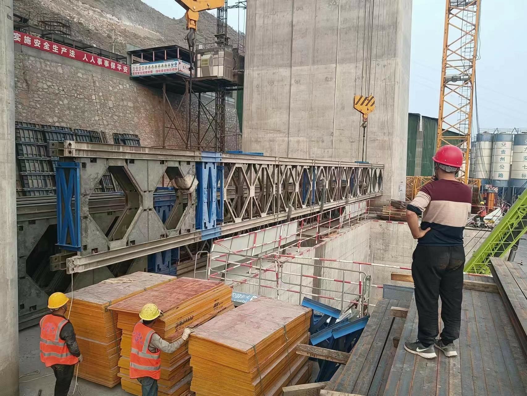 三、花江峡谷大桥主塔下横梁贝雷片试吊;主塔下横梁预应力波纹管安装检测