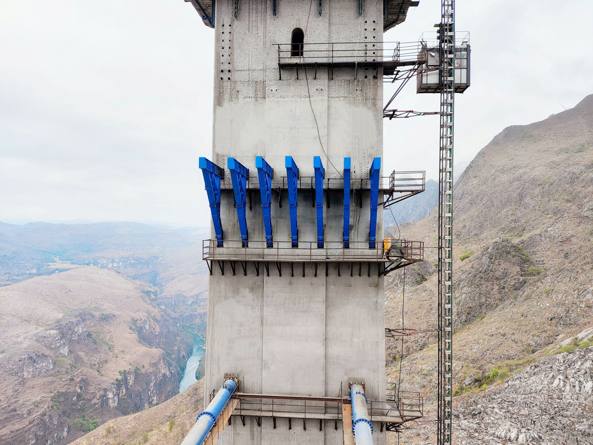 日积月累,由于时间不断流逝,六安七标建设如火如荼、抢抓工期、加快施工进度,花江峡谷大桥5#主塔左右幅均突破百米大关,正式进入百米高空施工阶段——牛腿安装、下横梁贝雷片安装......其花江峡谷大桥引桥1#至4#墩施工建设也有序推进。