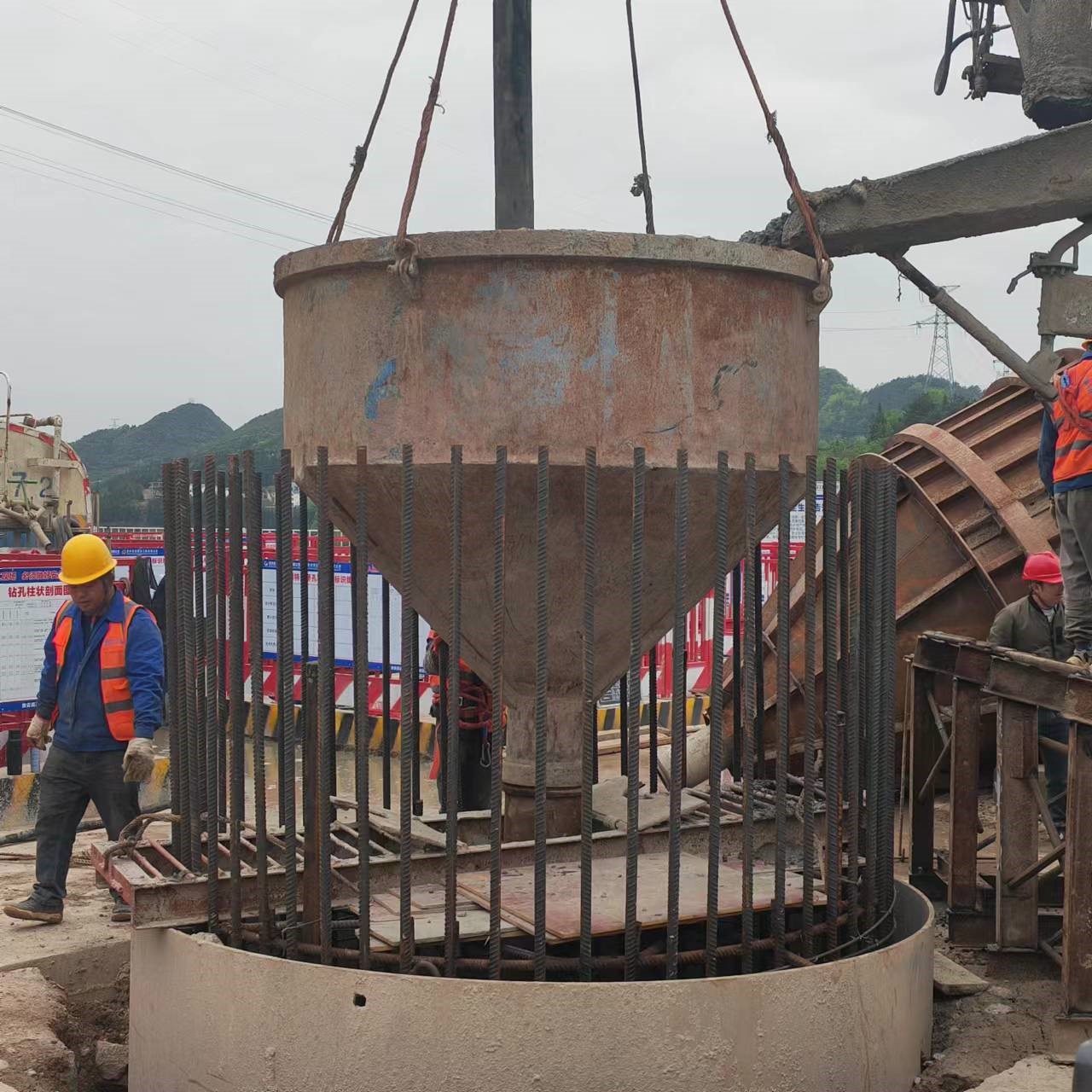 百花湖特大桥主塔毗邻百花湖水库,桩基岩溶发育为“串珠式”溶洞,溶洞之间存在与百花湖水库贯通情况,项目施工难度大、环保要求高。本次浇筑的首根桩基为主塔11-13号桩基,桩基直径2.8米,桩基长53米,采用旋挖钻成孔,水下混凝土浇筑。