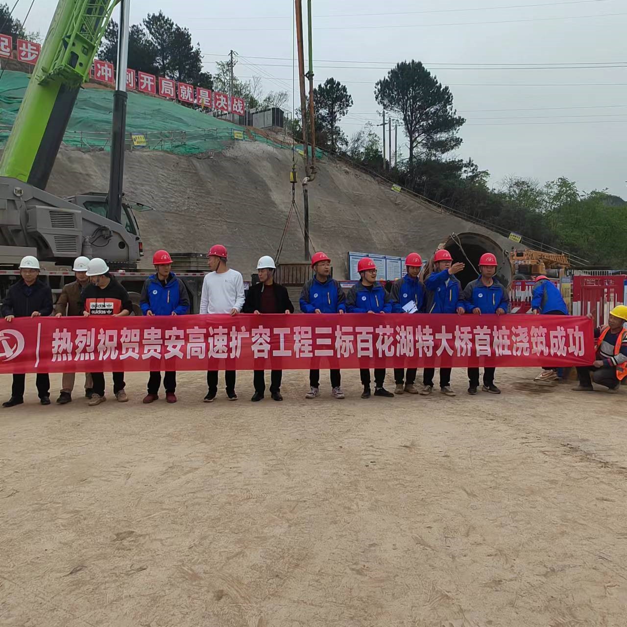 4月7日,由贵州公路集团第三工程有限公司承建的贵阳至安顺段扩容工程第GASG-3合同段百花湖特大桥主塔首根桩基顺利浇筑。