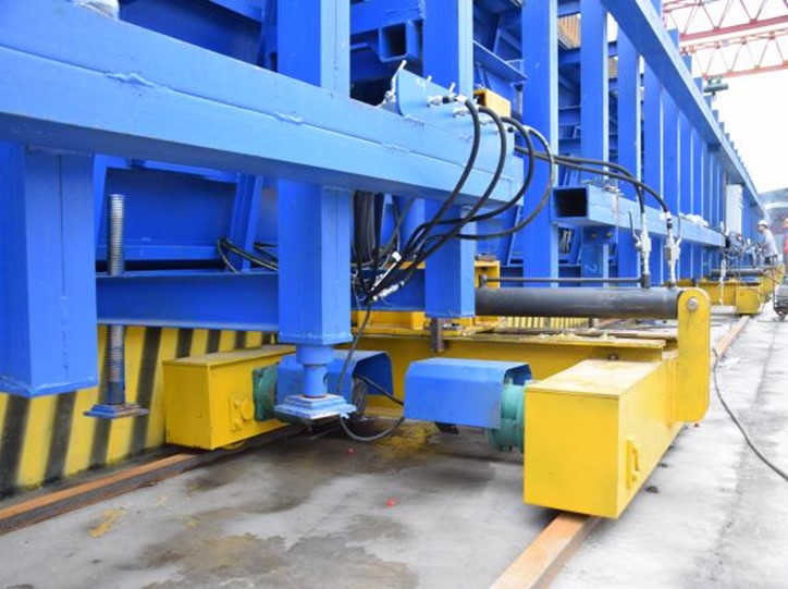 箱梁液压模板施工;一体式液压模板由模板、轨道、液压控制系统、行走系统和连接件组成,解决了跨度大、横隔板多、负弯矩多等多项脱模难度大的难题。液压箱梁取代了传统人工装模、拆模、吊装转运模板的传统工艺,液压箱梁模板只需首次人工安装模板,后期的装模、拆模全部采用液压控制系统整体装拆实现,拆完模后启动电机把模板直接开到下一工作台座位置即可,整个过程大大减少了人工,减少了吊装,节省了装模拆模的时间。