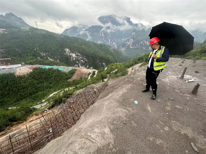 侯云(左一)在湖北十巫南项目检查汛期安全工作